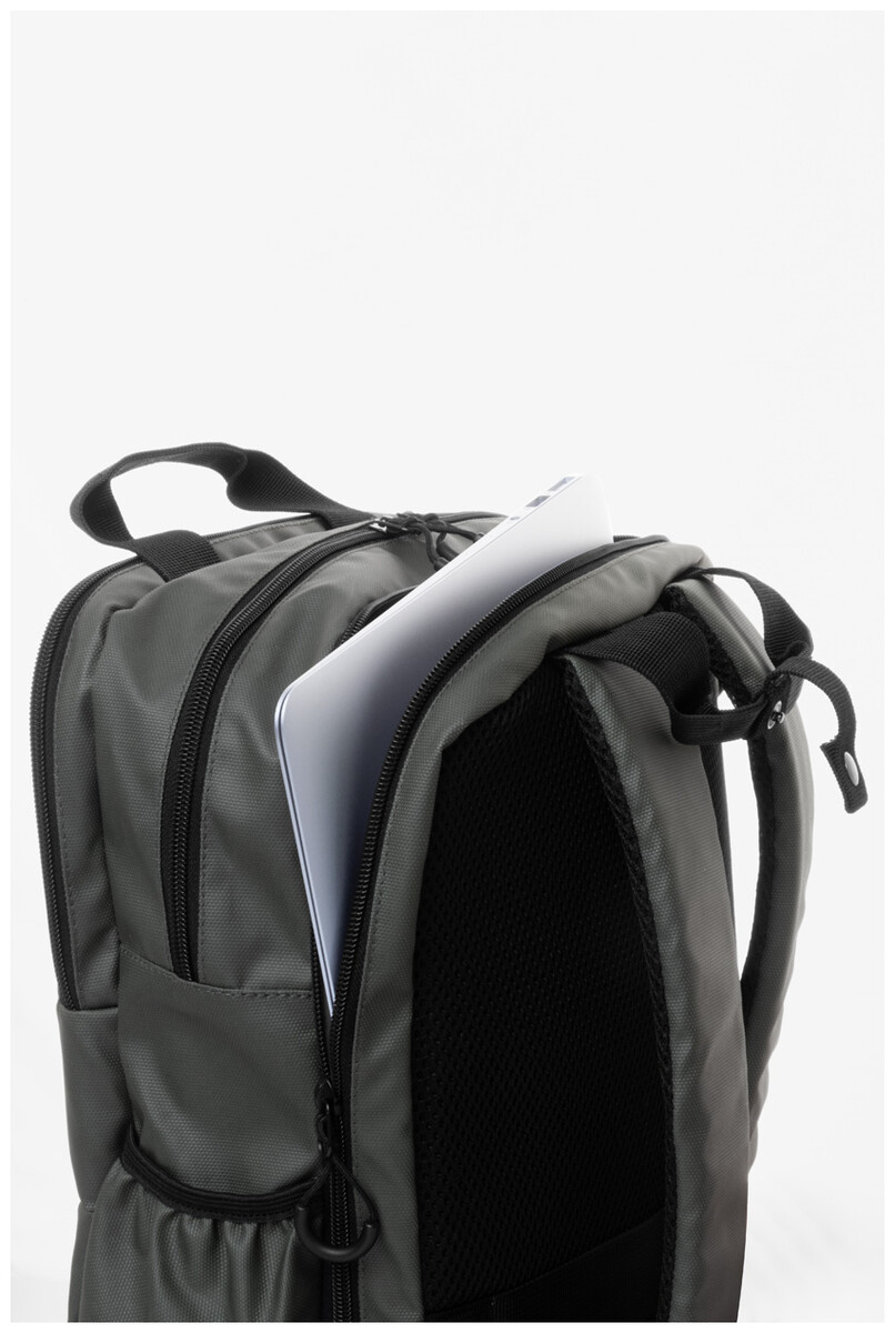 Vodotěsný batoh RPET se 2 přihrádkami na zip, 2 předními kapsami na zip, bočními kapsami a polstrovanou přihrádkou na notebook (16"). S popruhem na vozík, polstrovanými zády a ramenními popruhy. Polyester 600D RPET potažený PU, s výrazným štítkem RPET.