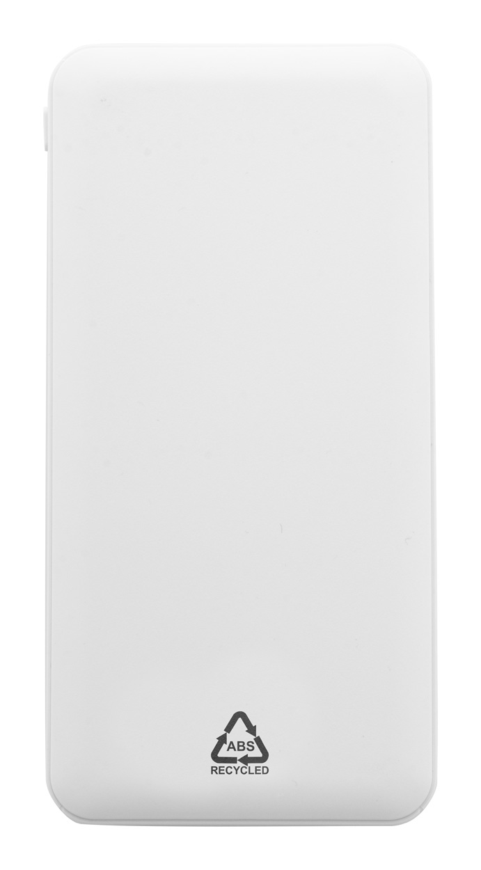 Power banka z recyklovaného ABS plastu s baterií 10 000 mAh. Se 2 porty USB a 1 portem USB-C pro nabíječku. Vstupní porty Micro USB a USB-C. Včetně USB nabíjecího kabelu.