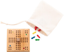 Hra Člověče nezlob se v bambusu v bavlněném pytlíku se stahovací šňůrkou.
