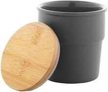 Vysoce kvalitní keramický hrnek s bambusovým víčkem. S matnou vnější a lesklou vnitřní povrchovou úpravou. 240 ml. V kraftové papírové krabici.