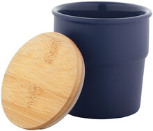 Vysoce kvalitní keramický hrnek s bambusovým víčkem. S matnou vnější a lesklou vnitřní povrchovou úpravou. 240 ml. V kraftové papírové krabici.