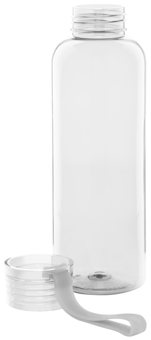 Láhev RPET s víčkem v odpovídající barvě a silikonovým popruhem, 500 ml. Nevhodné pro sycené nápoje.