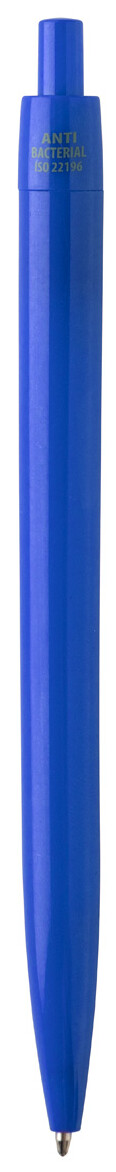 Plastové kuličkové pero s antibakteriálním tělem. Obsahuje přísadu nano stříbra, která zabraňuje růstu bakterií na těle pera. Se stiskacím mechanismem a modrou náplní. V souladu s ISO 22196: 2011.