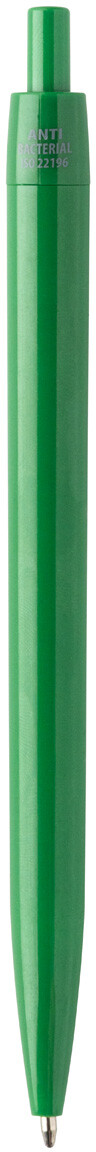 Plastové kuličkové pero s antibakteriálním tělem. Obsahuje přísadu nano stříbra, která zabraňuje růstu bakterií na těle pera. Se stiskacím mechanismem a modrou náplní. V souladu s ISO 22196: 2011.