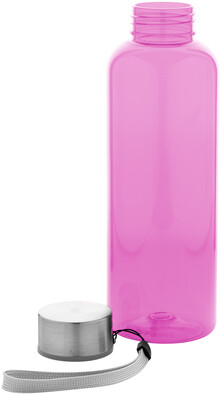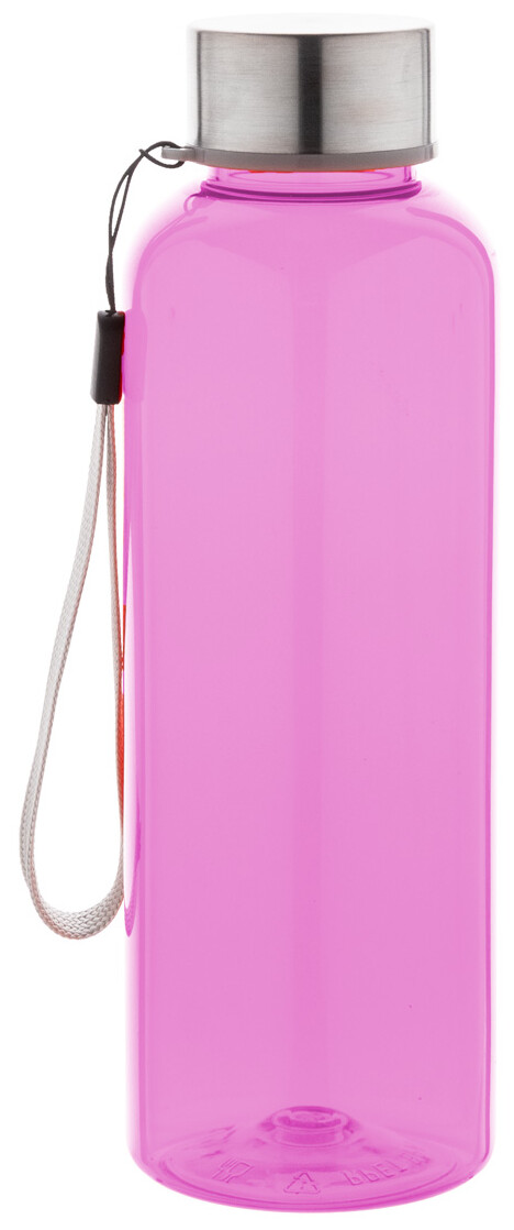 RPET láhev s nerezovým uzávěrem a popruhem, 500 ml. Bez BPA. Nevhodné pro sycené nápoje.
