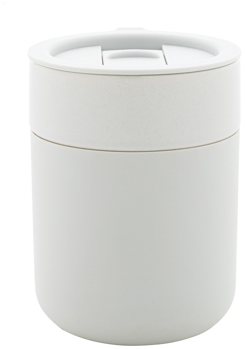 Silikonem potažený keramický cestovní kelímek s PP plastovým odkapávacím víčkem. 300 ml.