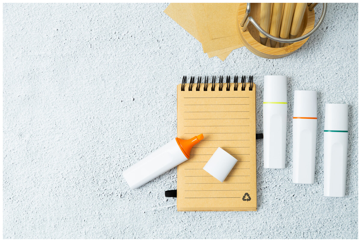 Zvýrazňovač z recyklovaného ABS plastu s uzávěrem.
