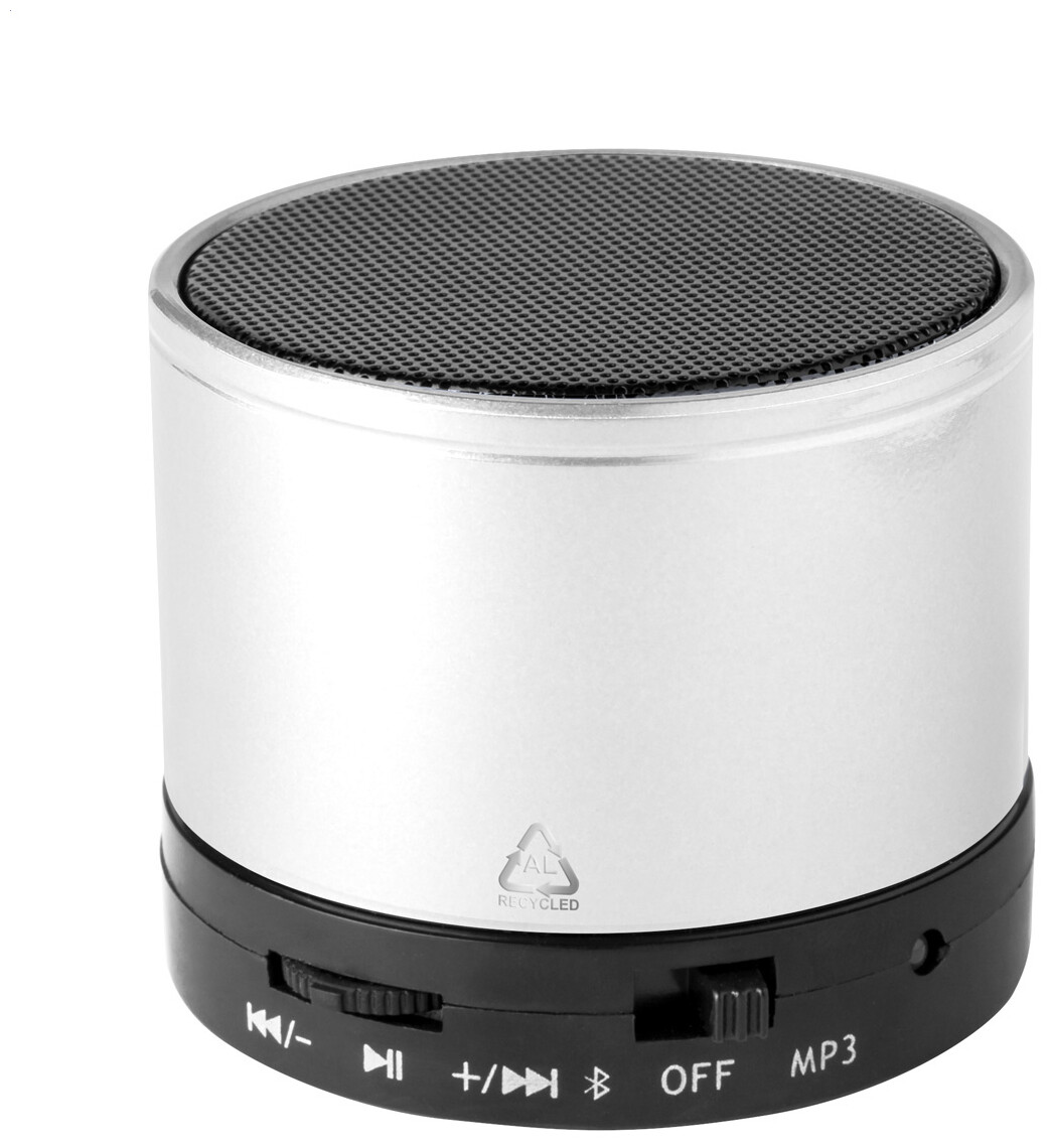 Bezdrátový reproduktor z recyklovaného hliníku a recyklovaného ABS krytu. S rádiem, přehrávačem MP3, funkcí handsfree a vestavěnou dobíjecí baterií (300 mAh). Včetně USB nabíječky a aux-in kabelu.