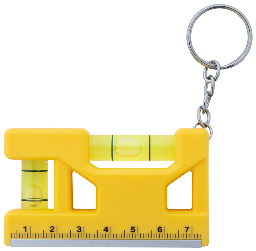 Multifunkční přívěšek na klíče z recyklovaného ABS s kovovým kroužkem, pravítkem, magnetem a dvojitou vodováhou.