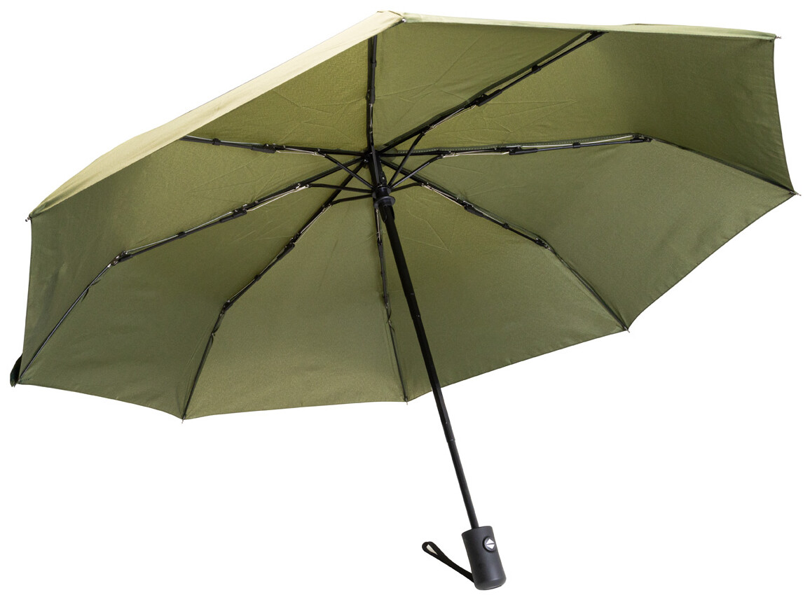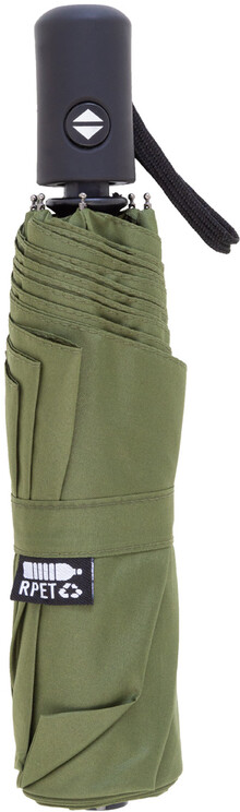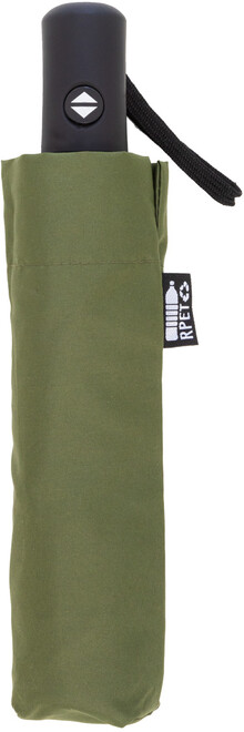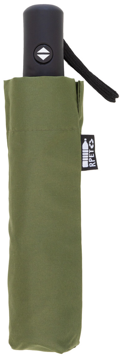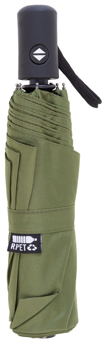Plně automatický (otevřít/zavřít), větruodolný skládací deštník s 8 panely v pouzdře v odpovídající barvě. S kovovým rámem, sklolaminátovými žebry a pogumovanou rukojetí s poutkem na ruku. Pongee 190T RPET. S výrazným štítkem RPET.