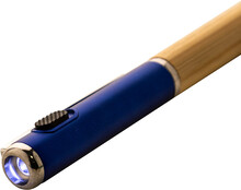 Kuličkové pero z bambusu a recyklovaného ABS plastu s 1 LED svítilnou. S modrou náplní a knoflíkovou baterií.