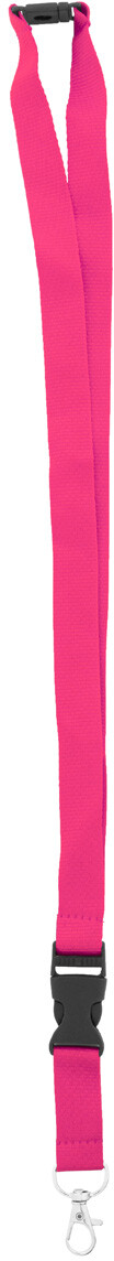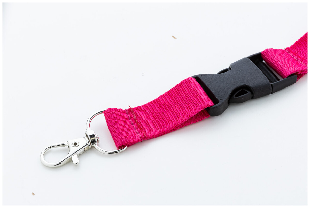Polyesterový lanyard RPET s odnímatelnou kovovou karabinou a bezpečnostní přezkou.