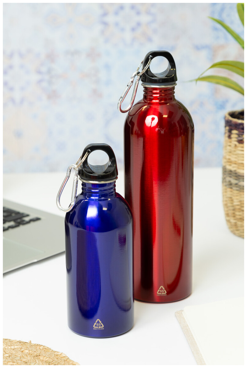Láhev z recyklované nerezové oceli s hliníkovou karabinou, 750 ml.