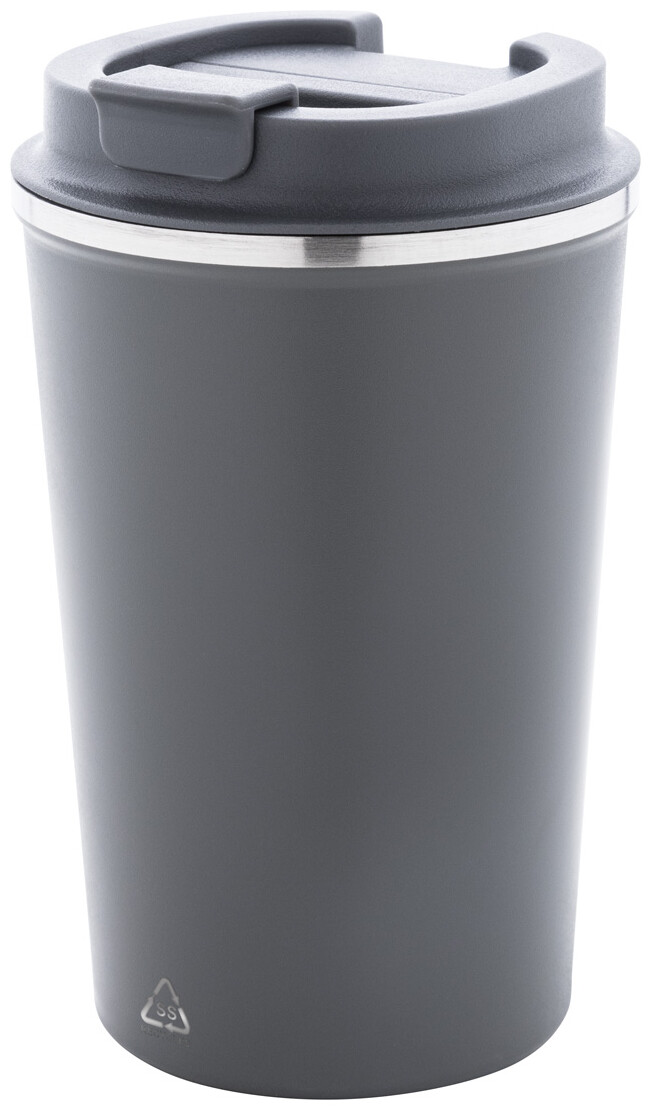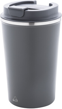 Dvoustěnný termo hrnek z recyklované nerezové oceli s víčkem na pití z PP. 350 ml.