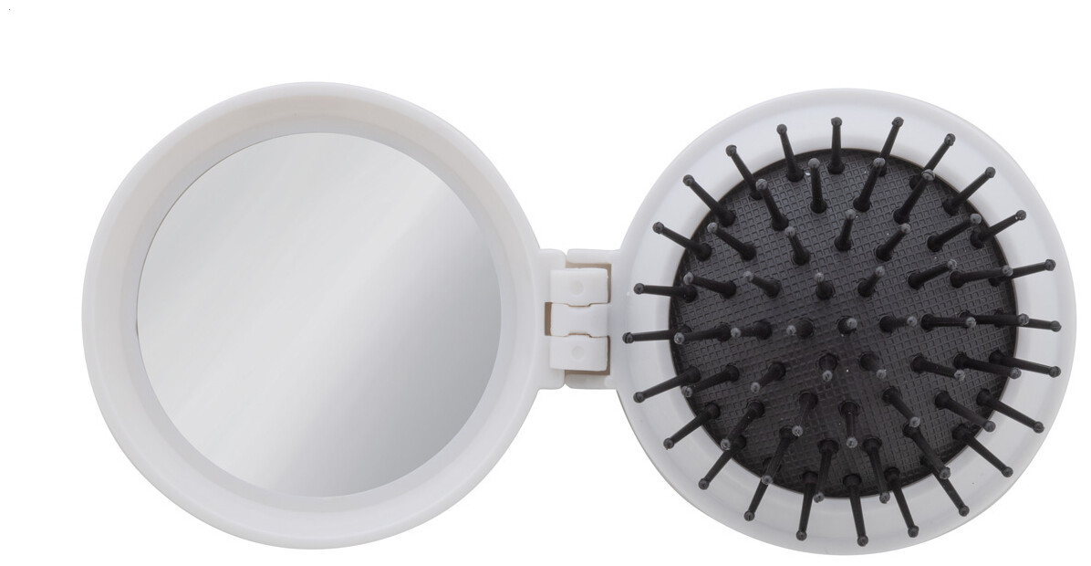 Skládací kartáč na vlasy z recyklovaného ABS s kapesním zrcátkem.