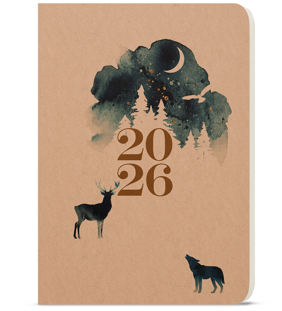 Týdenní diář s obalem v přírodním provedení. Módní doplněk s prostorem pro poznámky a plánování.