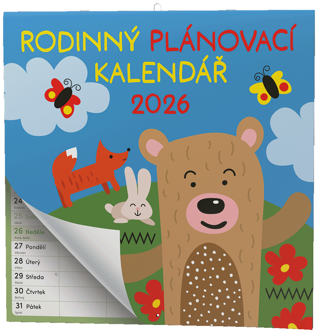 - poznámkové kalendárium se státními svátky, měsíční fáze, roční období, letní a zimní čas, místo na poznámky pro členy rodiny