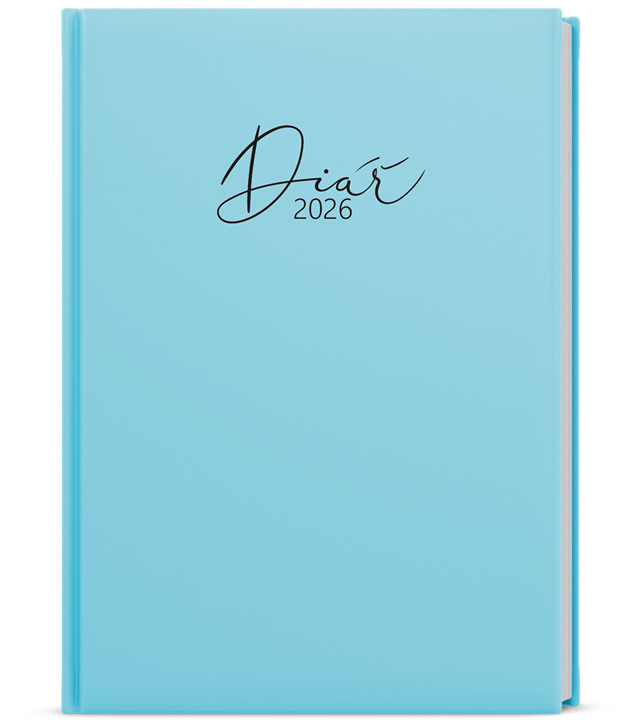 Týdenní diář v sametovém laminu s parciálním lakem v pastelově modré barvě. Je vyráběný ve formátu A5, má velký prostor pro poznámky a plánování.