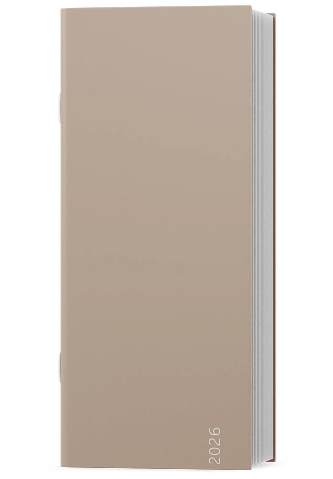 Jednoduchý a praktický měsíční diář z jemného matného materiálu v moderní barvě. Ideální pro každého, kdo si oblíbil měkkou šitou vazbu.