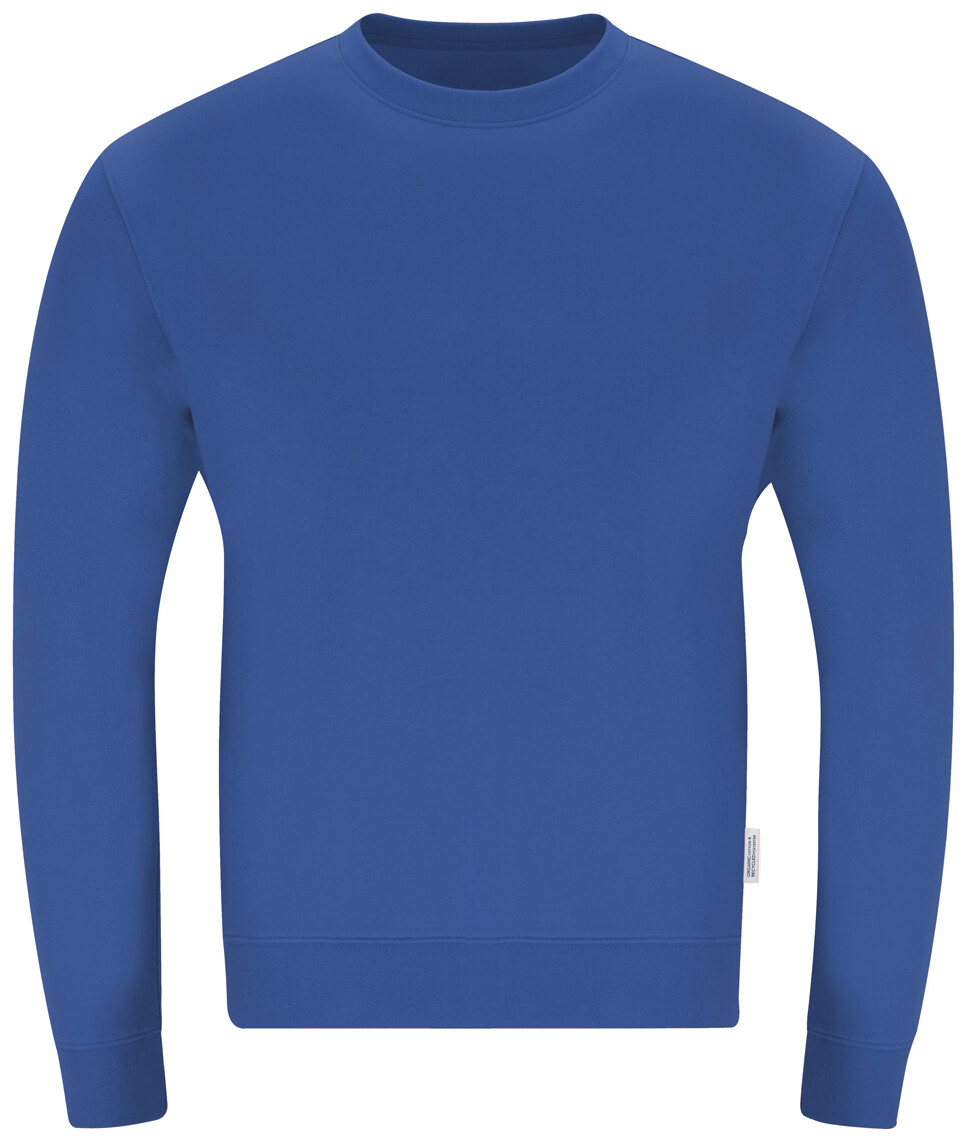 Mikina s kulatým výstřihem ze 60% organické bavlny a 40% RPET polyesteru, 280 g/m2.