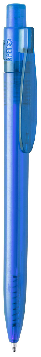 Průhledné plastové kuličkové pero RPET. S modrou náplní.