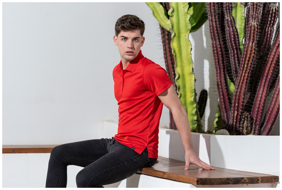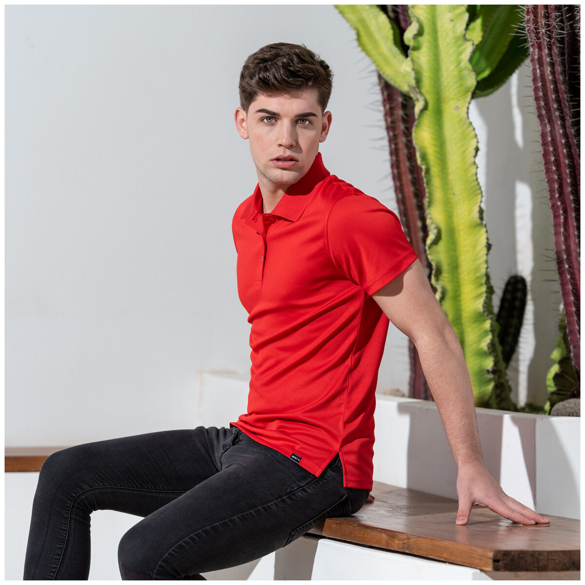 100% RPET polyester, prodyšná polokošile se třemi knoflíky na krku ve stejné barvě. 180 g/m2. S výrazným štítkem RPET.