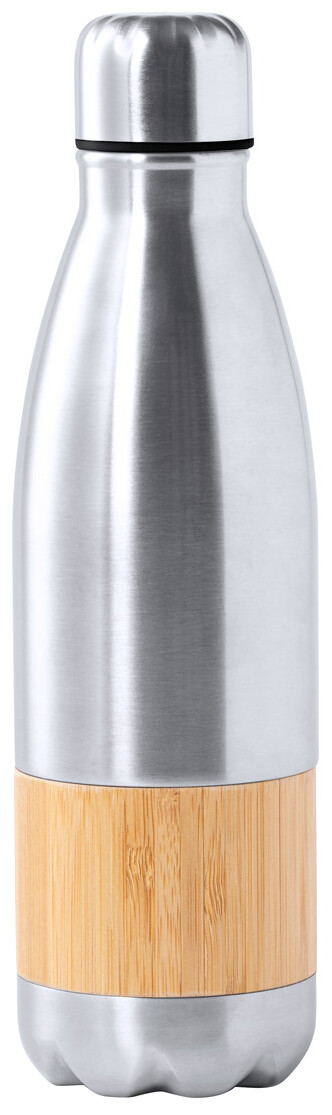 Sportovní láhev ve tvaru láhve z nerezové oceli s bambusovou vložkou, 750 ml.
