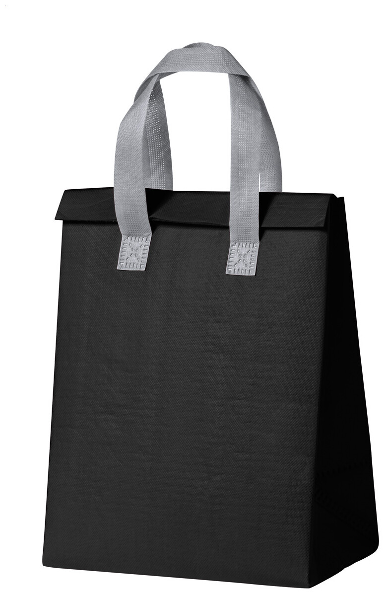 Chladicí taška z laminované netkané textilie s uchy, zapínáním na suchý zip a hliníkovou výplní.