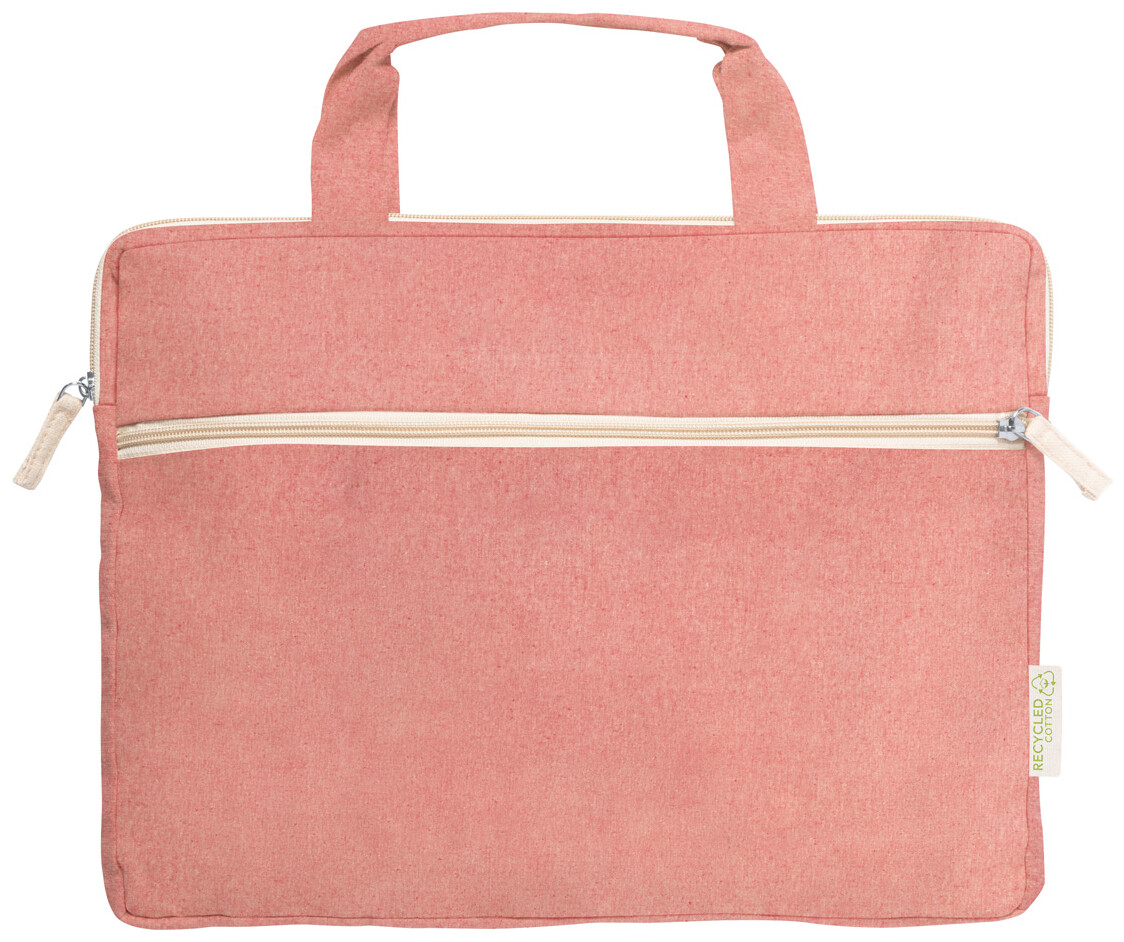 Taška na dokumenty z recyklované bavlny s přihrádkou na zip a výrazným štítkem z recyklované bavlny. 100% recyklovaná bavlna, 275 g/m2.
