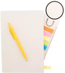Záložka a pravítko z recyklovaného kartonu na mléko s 15 lepicími papírky a 75 značkovači stránek (v 5 různých barvách).