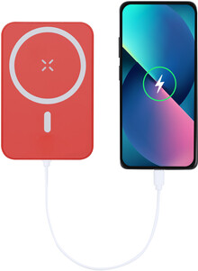 Power banka z ABS plastu s 5000 mAh baterií a vestavěnou magnetickou bezdrátovou nabíječkou (5W). Se vstupem USB-C a portem pro nabíječku. Kompatibilní s iPhone® 12 nebo novějším. Včetně USB nabíjecího kabelu.