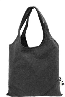 Skládací nákupní taška ze 70 % recyklované bavlny a 30 % polyesteru RPET, 140 g/m2. S výrazným štítkem z recyklované bavlny.