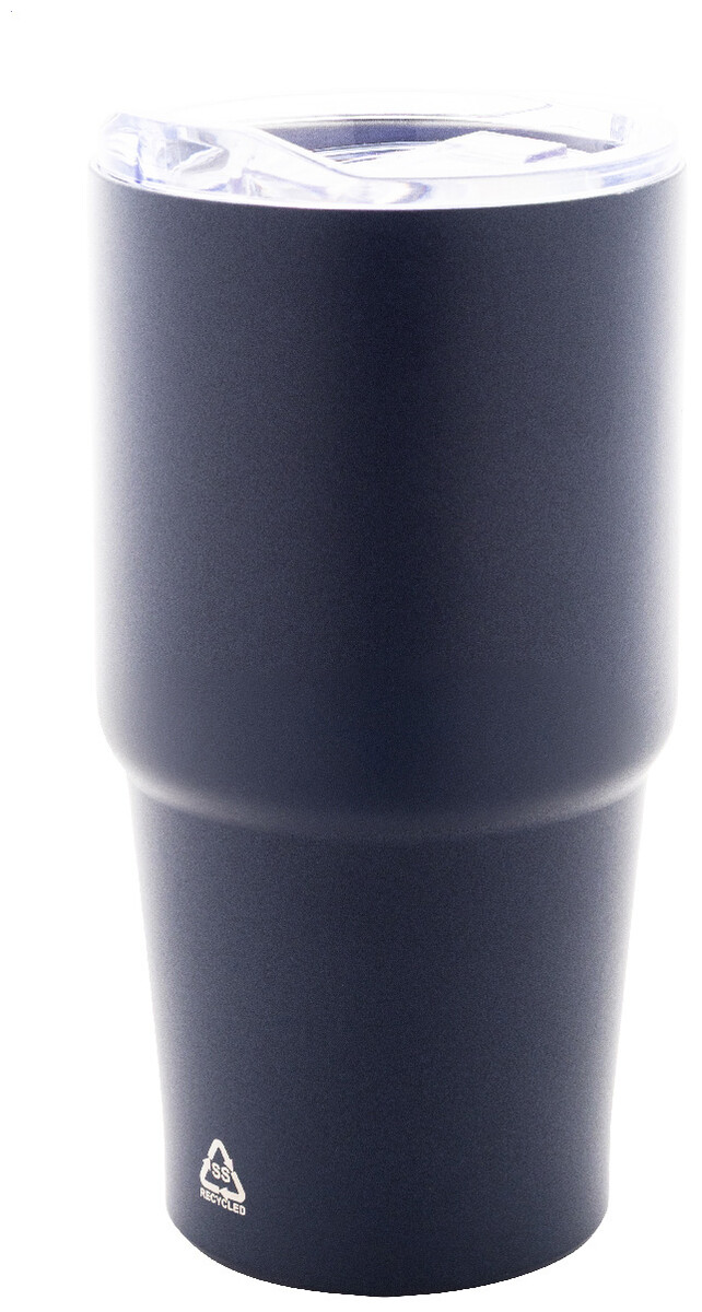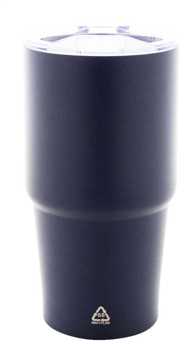 Dvoustěnný vakuově izolovaný termohrnek z recyklované nerezové oceli s víčkem z polystyrenového plastu. 600 ml.