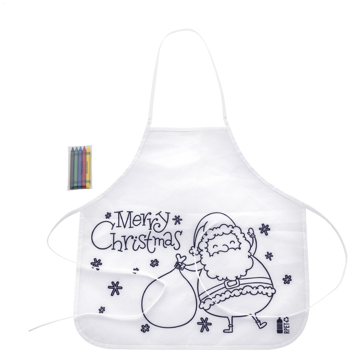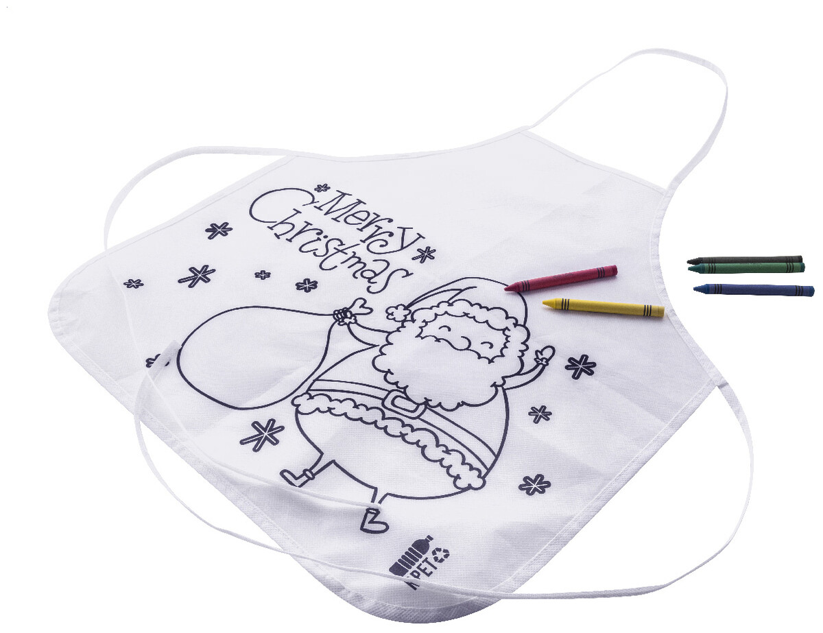 Vánoční zástěra na vybarvování pro děti z netkané RPET tkaniny s 5 voskovkami.