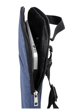 Polstrovaná taška přes rameno z polyesteru 600D RPET na dokumenty nebo notebook s přihrádkou na zip a přední kapsou na zip. Vhodná pro notebooky do velikosti 15". S nastavitelným ramenním popruhem vybaveným vertikální a horizontální polohou. S výrazným štítkem RPET.