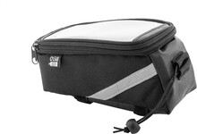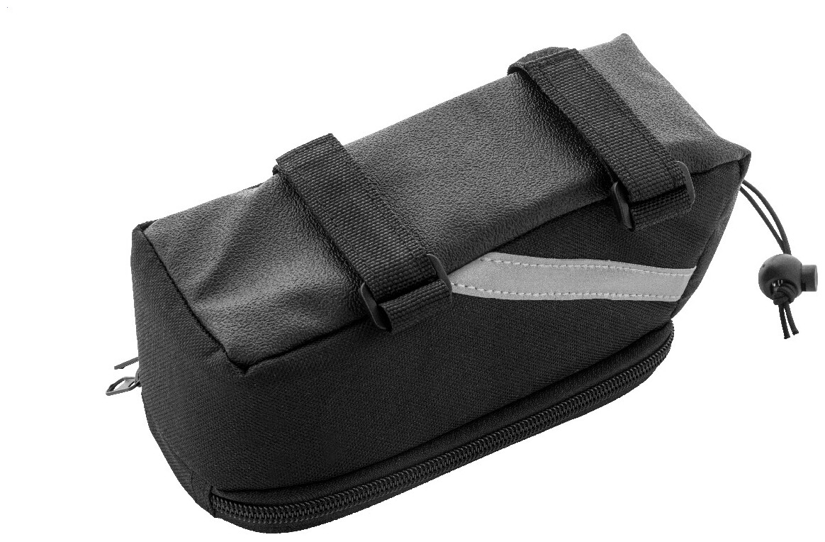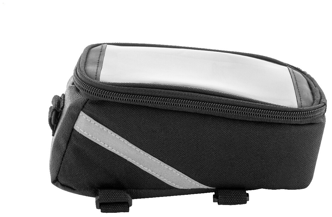 Brašna na rám kola z RPET s přihrádkou na zip, kapsou na mobil s dotykovou obrazovkou, nastavitelnými popruhy na suchý zip a reflexními proužky. Polyester 600D RPET s výrazným štítkem RPET.