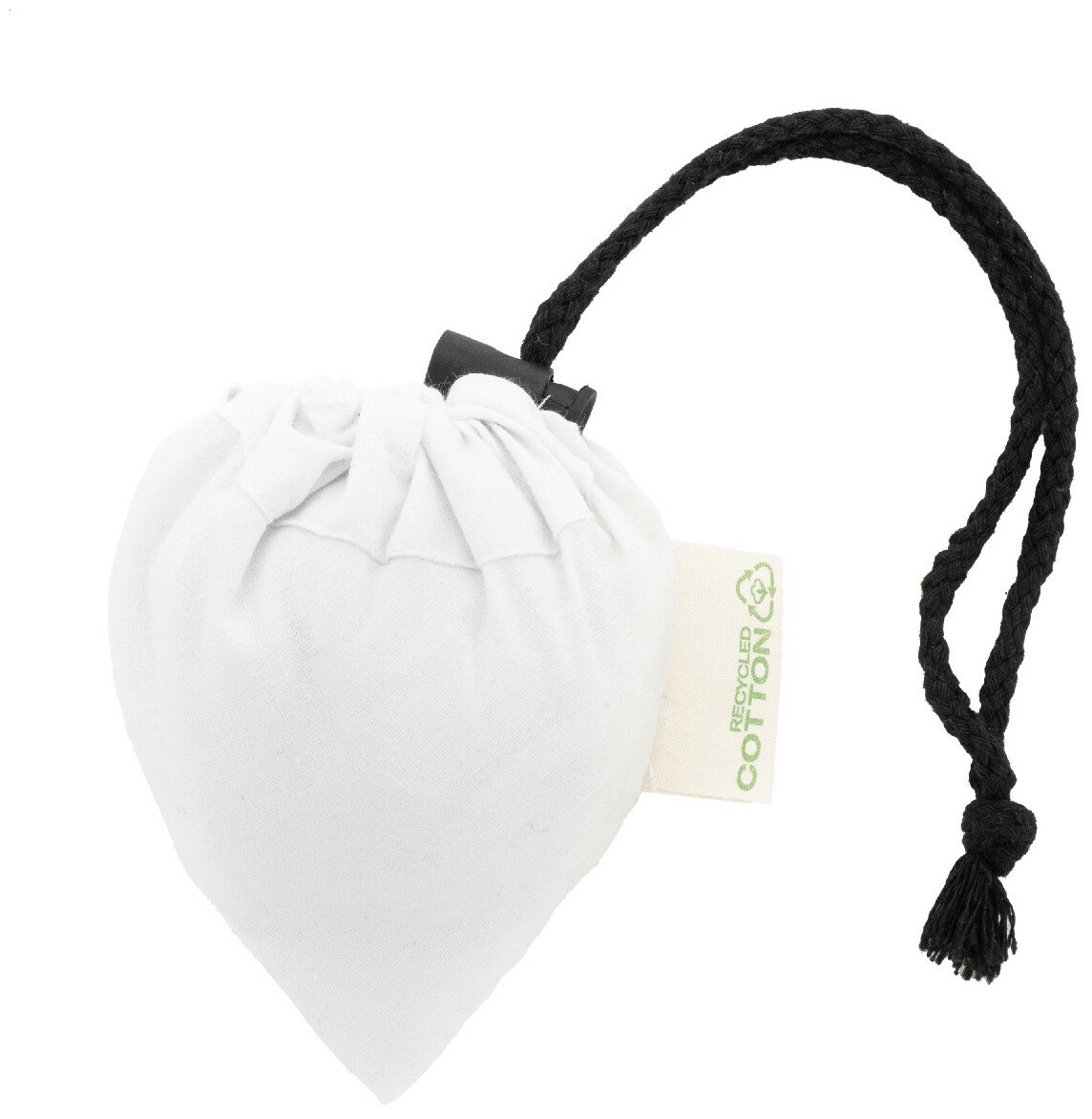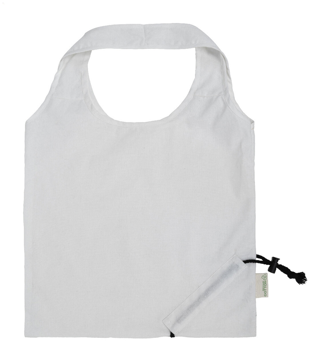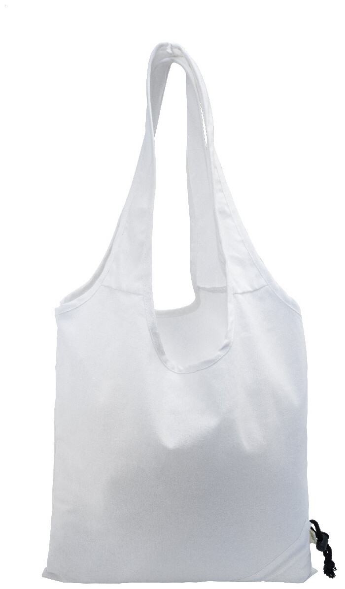 Skládací nákupní taška ze 70 % recyklované bavlny a 30 % polyesteru RPET, 140 g/m2. S výrazným štítkem z recyklované bavlny.