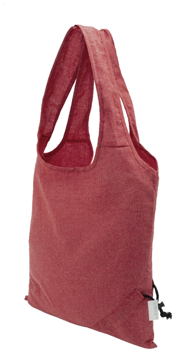 Skládací nákupní taška ze 70 % recyklované bavlny a 30 % polyesteru RPET, 140 g/m2. S výrazným štítkem z recyklované bavlny.