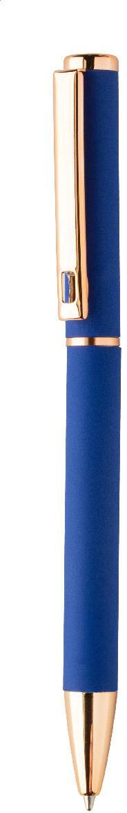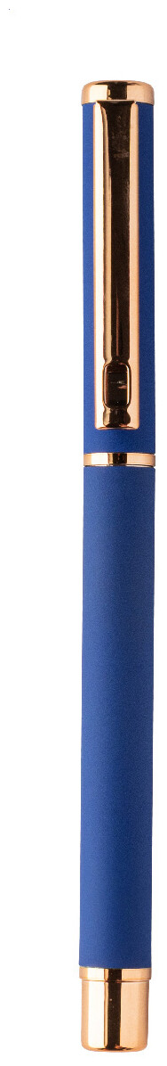Sada per z recyklovaného hliníku s kuličkovým perem a rollerem s pogumovaným povrchem a detaily růžového zlata. S modrou náplní. Se speciálním povrchem pro zrcadlové laserové gravírování v růžovo-zlaté barvě. V černé papírové dárkové krabičce.