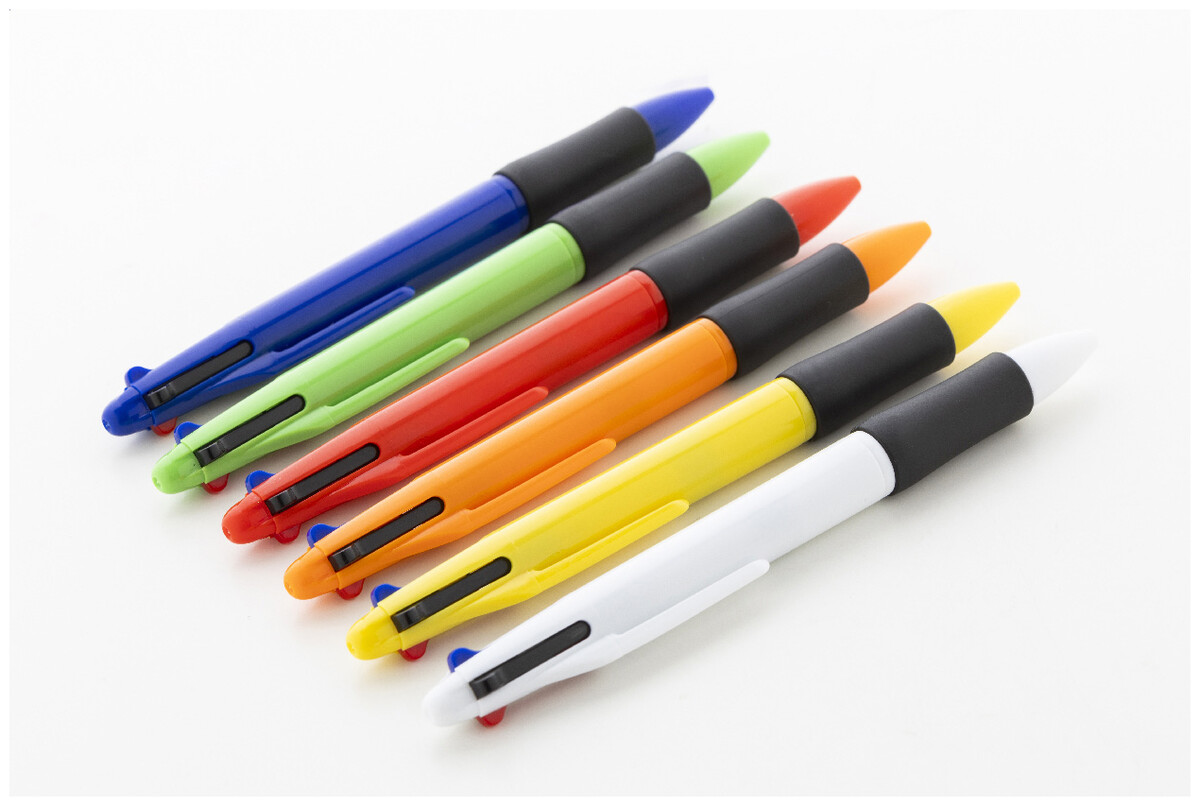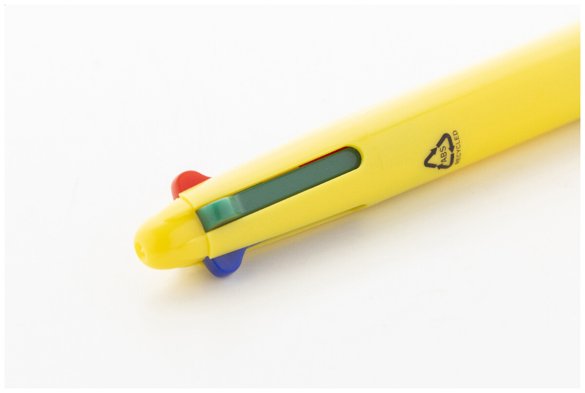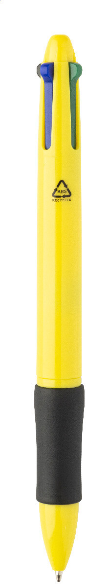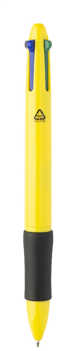 Vícebarevné kuličkové pero z recyklovaného ABS materiálu s gumovým úchopem. S černou, modrou, červenou a zelenou náplní.