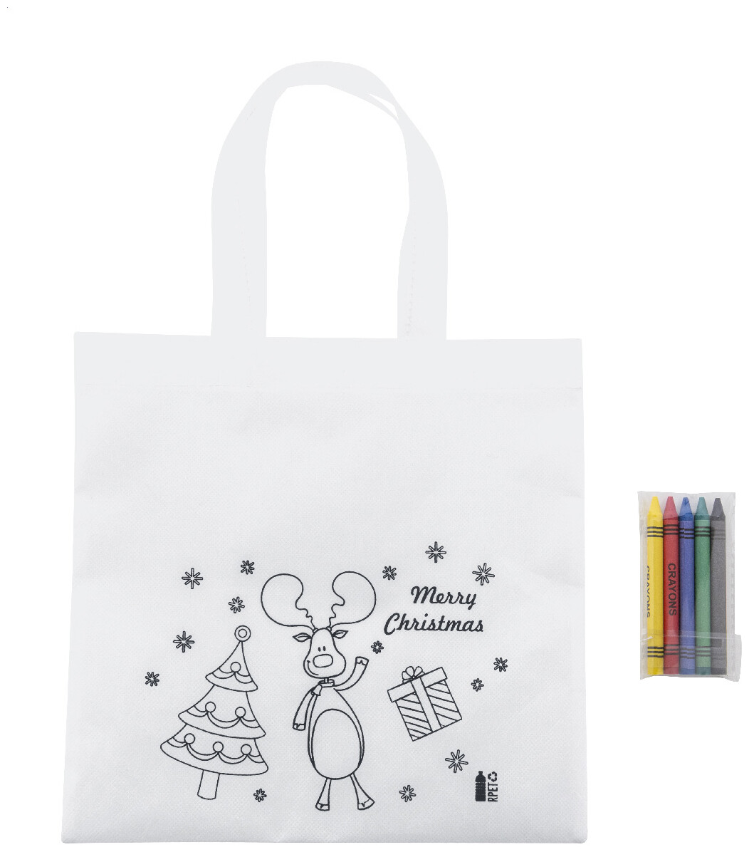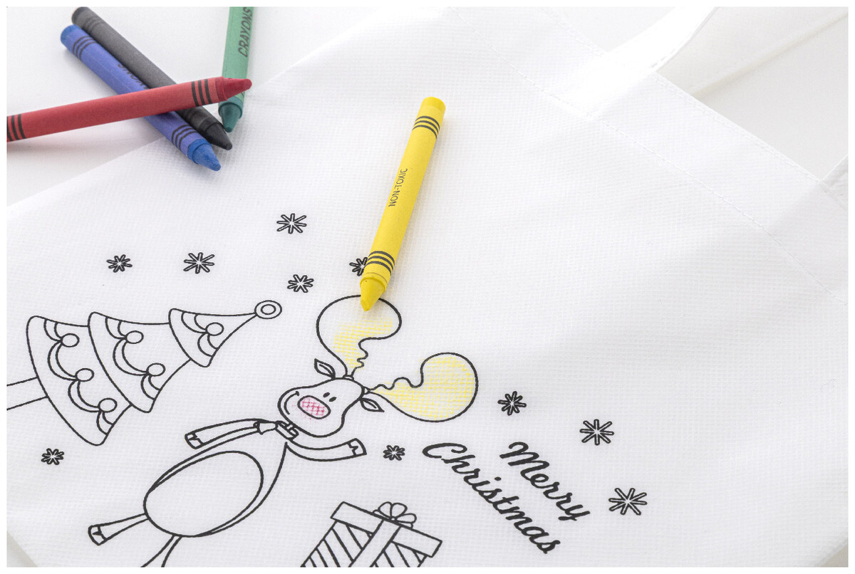Vánoční dárková taška z netkané RPET tkaniny na vybarvování s 5 voskovkami.