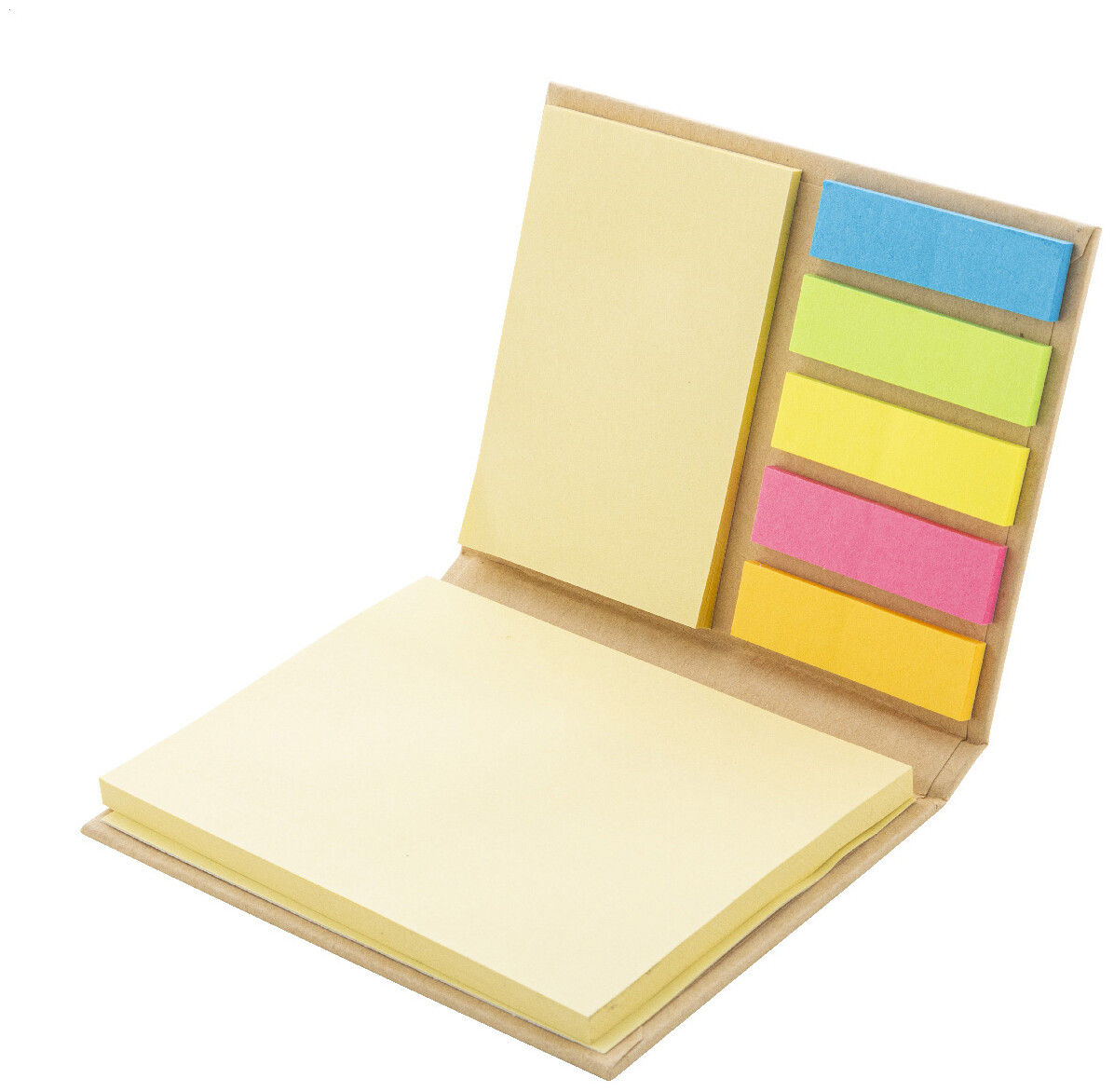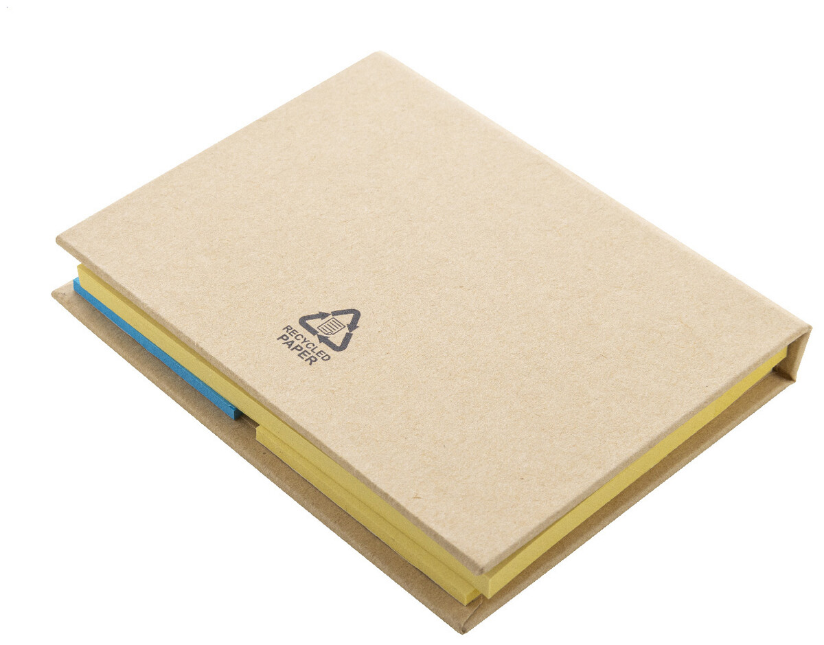 Samolepicí poznámkový blok z recyklovaného papíru s 50 velkými a 25 středními žlutými poznámkami a 125 značkovači stránek (v 5 barvách).
