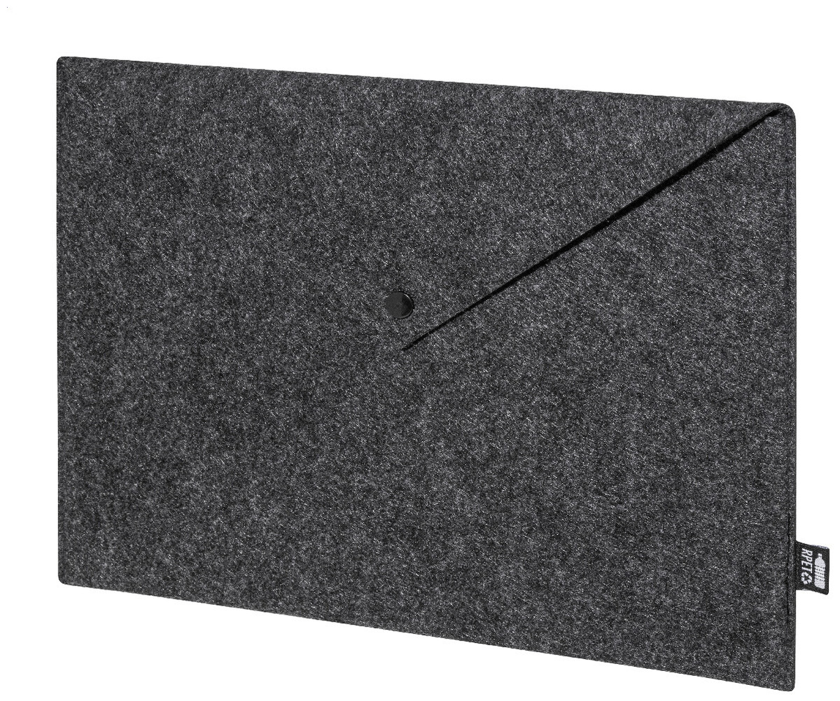 Taška na dokumenty nebo pouzdro na notebook z RPET plsti s knoflíkovým zapínáním. Vhodné pro notebooky do 13". S výrazným štítkem RPET.