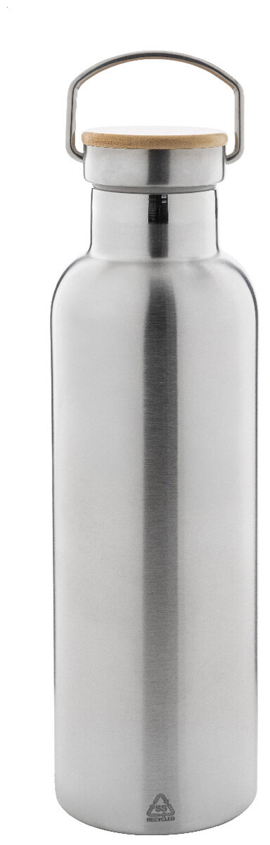 Dvoustěnná vakuově izolovaná láhev z recyklované nerezové oceli s bambusovým víčkem, 750 ml.