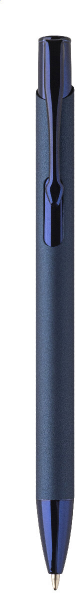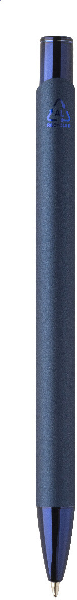 Kuličkové pero z recyklovaného hliníku s pogumovaným tělem a barevnými lesklými kovovými díly. Se speciálním povrchem pro zrcadlové gravírování, které odpovídá kovovým částem. S modrou náplní.