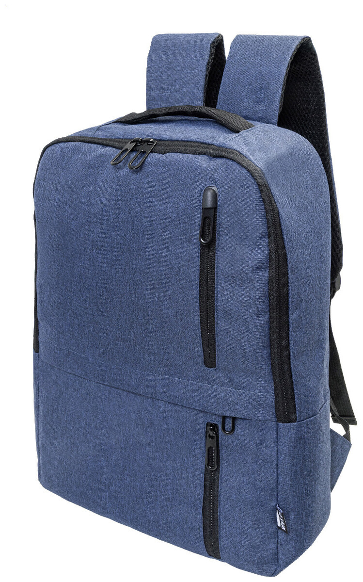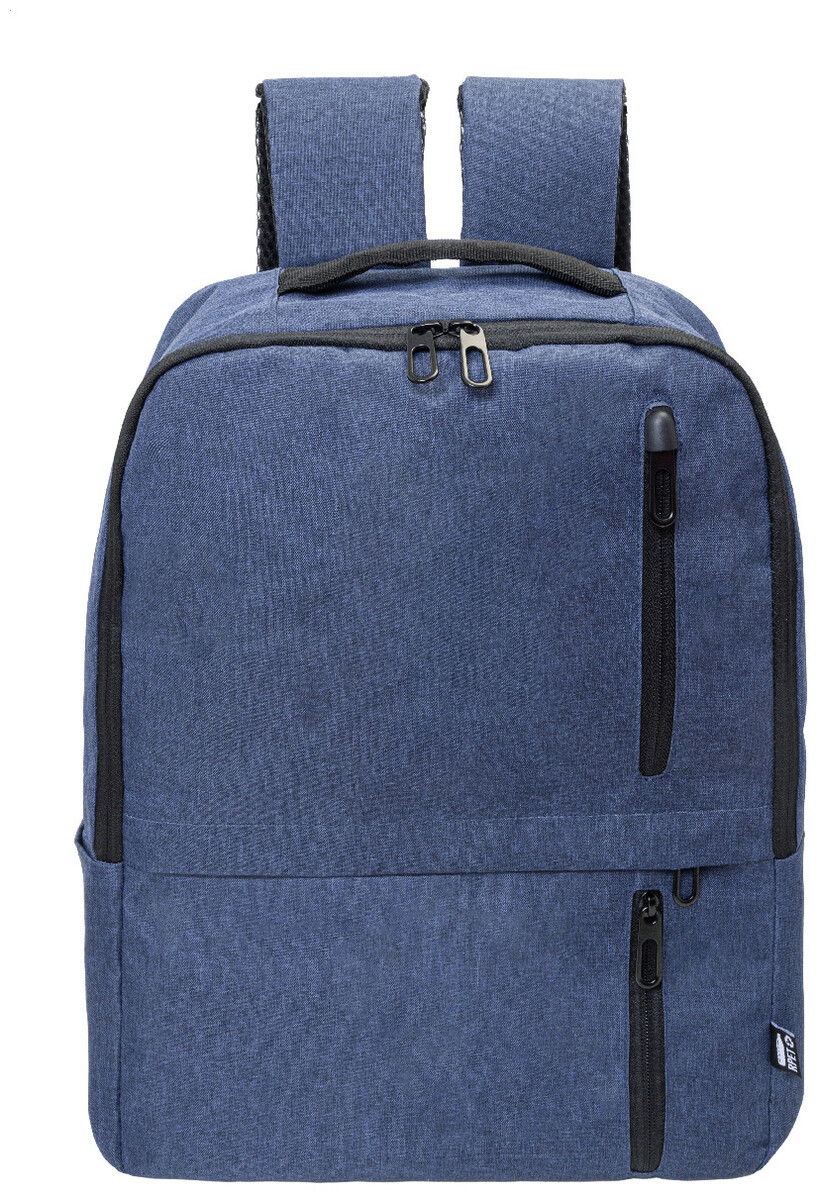 RPET batoh s hlavní přihrádkou na zip a 3 předními kapsami na zip. S polstrovanými přihrádkami na tablet (10") a notebook (15"), polstrovanými zády a ramenními popruhy. 600D RPET polyester s výrazným štítkem RPET.
