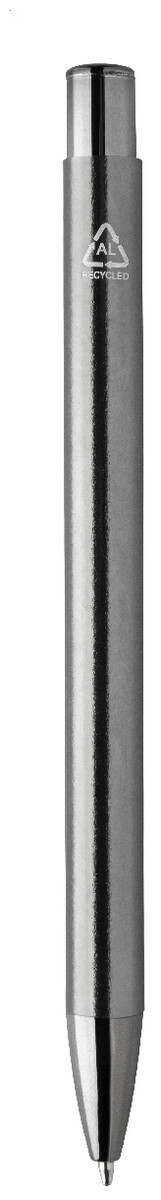 Kuličkové pero z recyklovaného hliníku s lesklým kovovým povrchem. S modrou náplní.