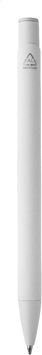 Kuličkové pero z recyklovaného hliníku s pogumovaným tělem a barevnými lesklými kovovými díly. Se speciálním povrchem pro zrcadlové gravírování, které odpovídá kovovým částem. S modrou náplní.