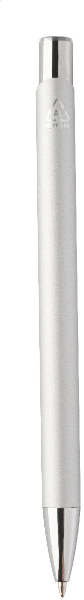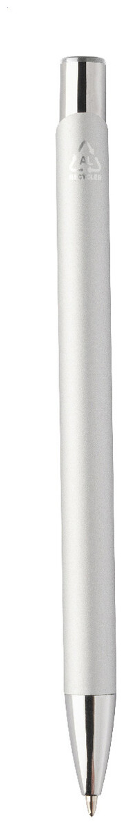 Kuličkové pero z recyklovaného hliníku s pogumovaným tělem a barevnými lesklými kovovými díly. Se speciálním povrchem pro zrcadlové gravírování, které odpovídá kovovým částem. S modrou náplní.