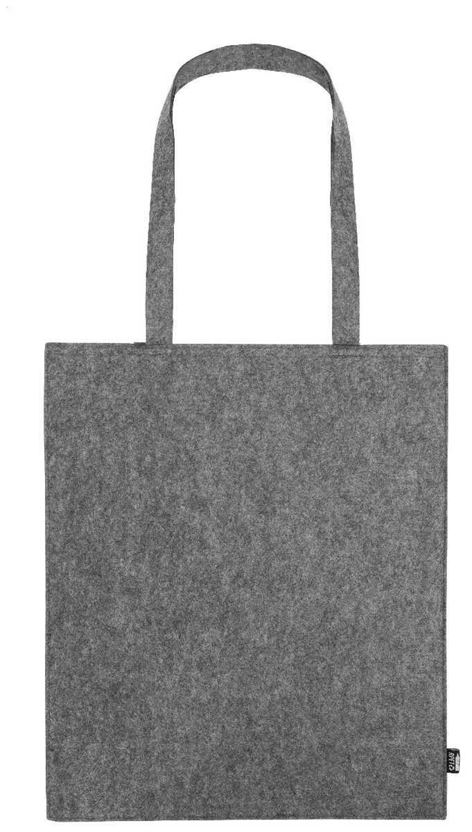 Nákupní taška z RPET plsti s dlouhými uchy. S výraznou etiketou z RPET.
